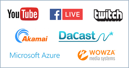| Stream to Facebook, YouTube, Twitter or RTMP | |||